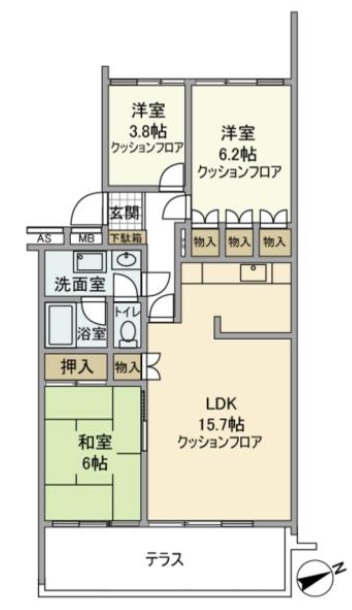 | 専有面積 | 69.61㎡ | 敷金/保証金/礼金 | 2ヶ月// 1ヶ月 |